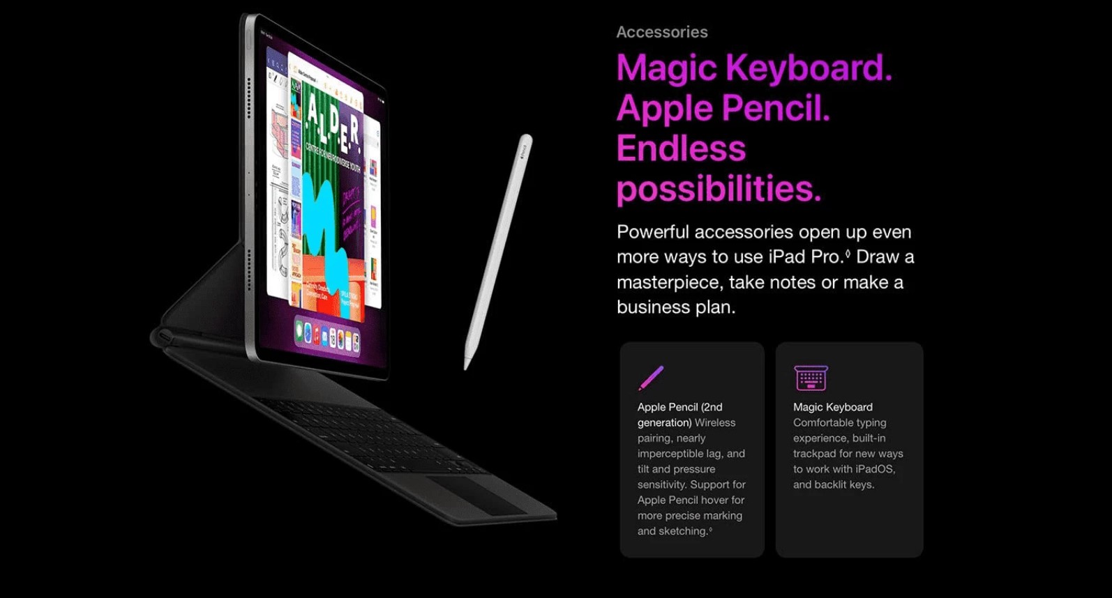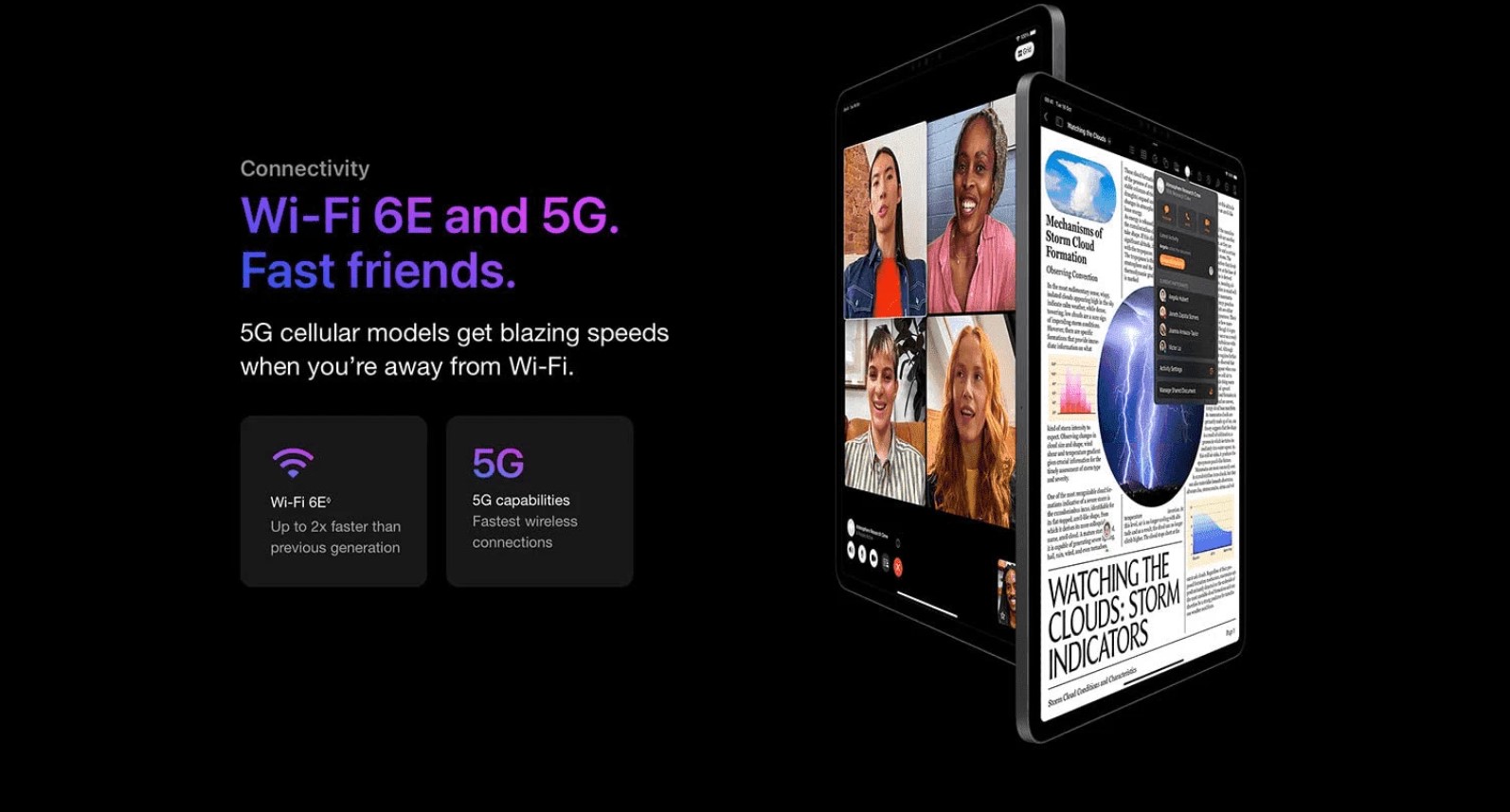 Apple's M2 chip brings a new generation of power to your iPad Pro. With up to 35% faster graphics performance, iPad Pro will let you work and create without slowdowns. Go ahead, edit ProRes video in DaVinci, or build a house in AR - the M2 chip won't mind. Whatever you do, it'll look stunning on the 11" Liquid Retina Display. It's amazingly sharp and bright, and ProMotion brings movement to life with 120 Hz refresh rate. And with WiFi 6E you'll have up to 2x faster connection to the internet. So, there's really nothing to slow you down.