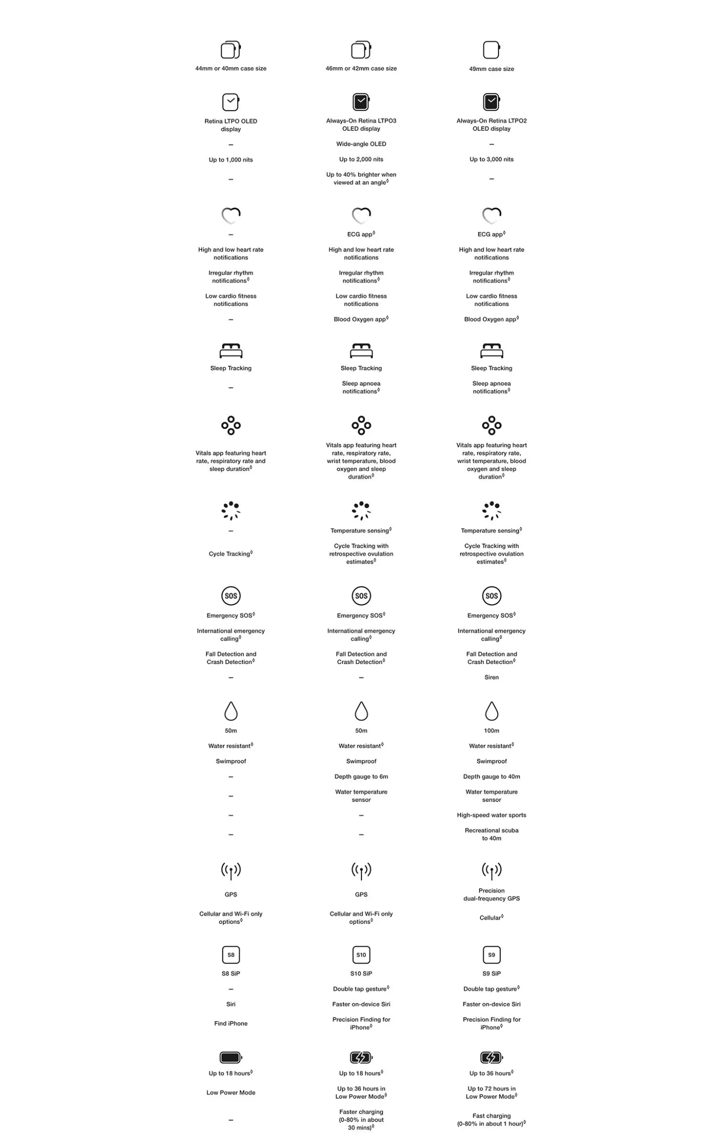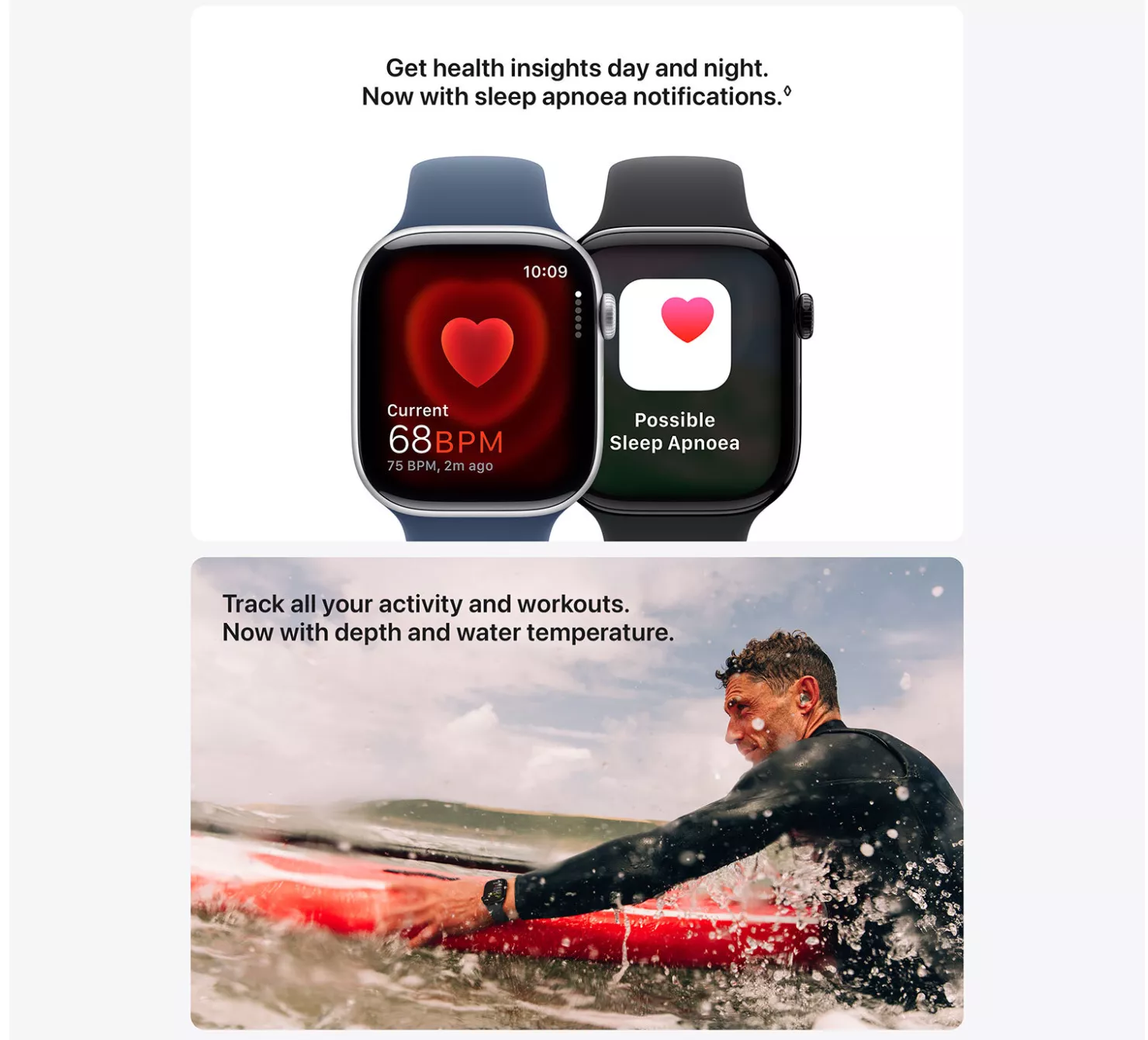 Advanced Health Insights - Take an ECG anytime. Get notifications if you have high or low heart rate or an irregular heart rhythm. Understand your menstrual cycle and get retrospective ovulation estimates. Track sleep and get notifications if signs of sleep apnoea are detected.