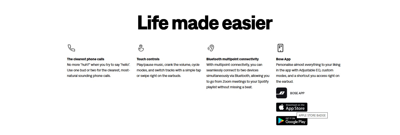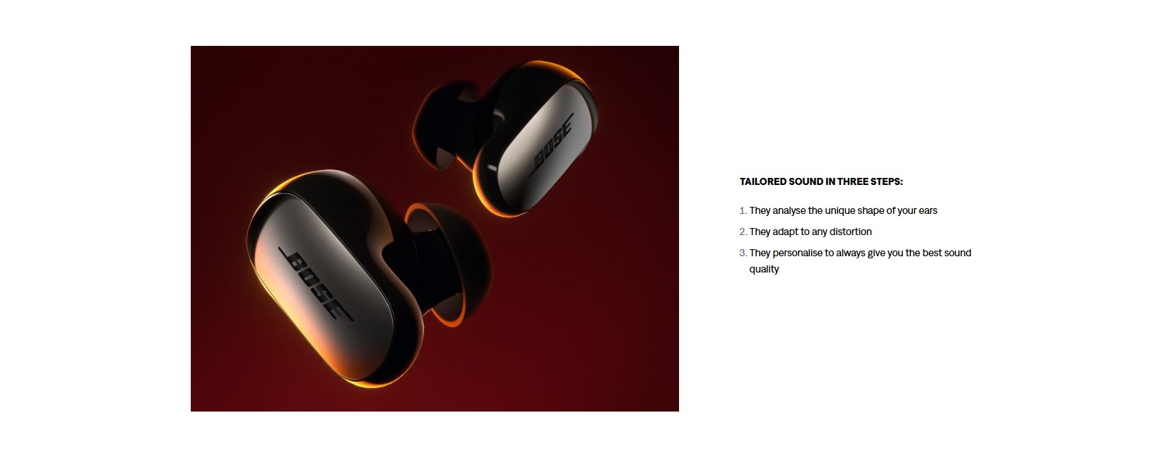 Breakthrough spatialised audio for more immersive listening that makes your music feel realer than ever before – no matter the content or source. World-class noise cancellation and sound tailored to you. And a design that feels so good to wear. Say less. (Listen more. ) QuietComfort Ultra Earbuds are the ultimate earbud experience.