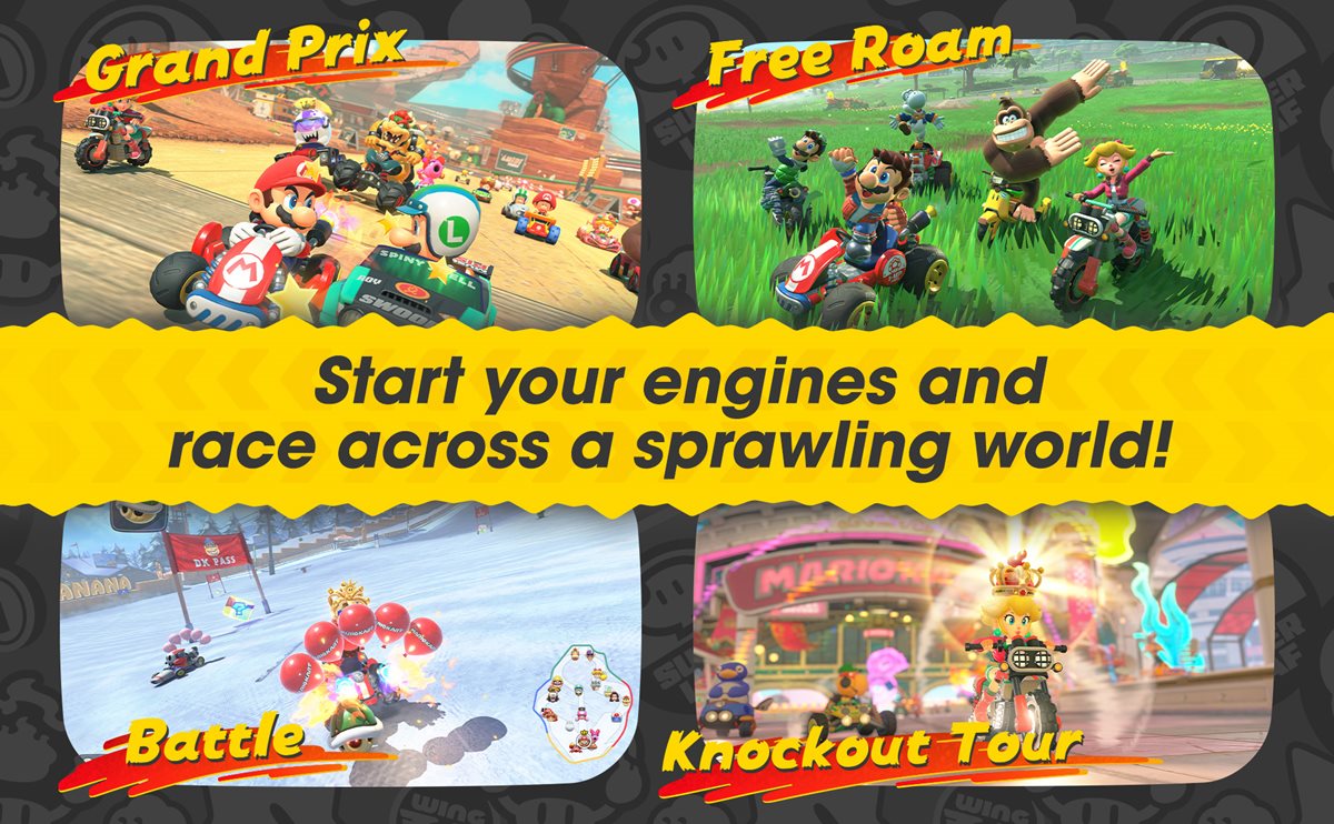 Grand Prix competes to earn the most points across four connected courses. Try to claim the top spot among 24 racers! Knockout Tour: If you don't place high enough by the time you reach each of the five checkpoints. . . You're OUT. Drive hard to survive and aim for first place! Free roam: Drive wherever your heart takes you. Where to? That's up to you! Explore areas that pique your interest, and maybe even snap some in-game pics at scenic spots.
