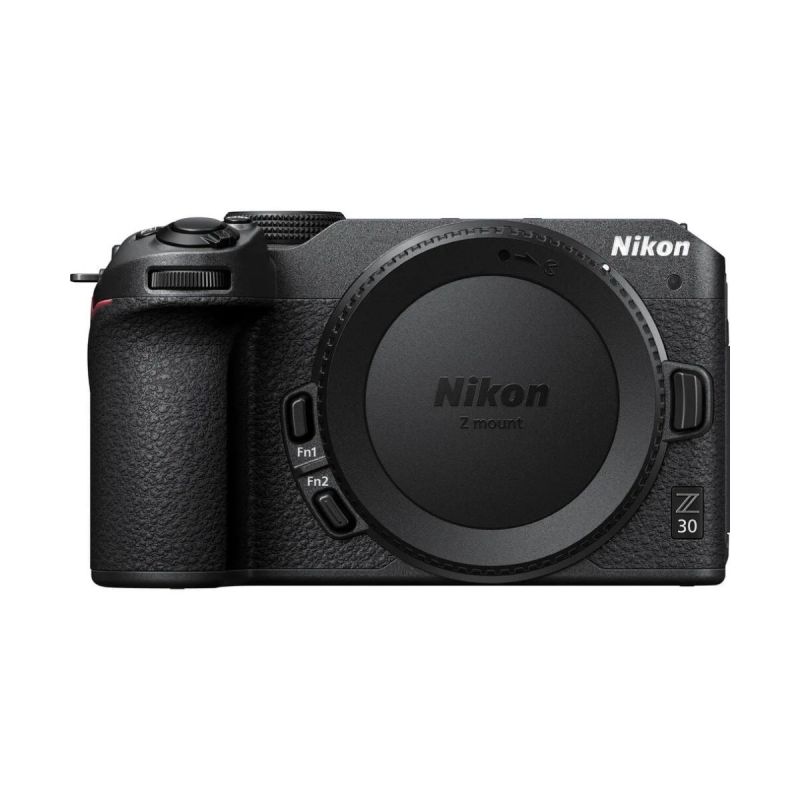 Nikon Z30 Mirrorless Camera, compact DX-format Z-mount vlogging camera with 4K30, FHD120, vari-angle touchscreen, eye/animal AF, and up to 125-min clips.