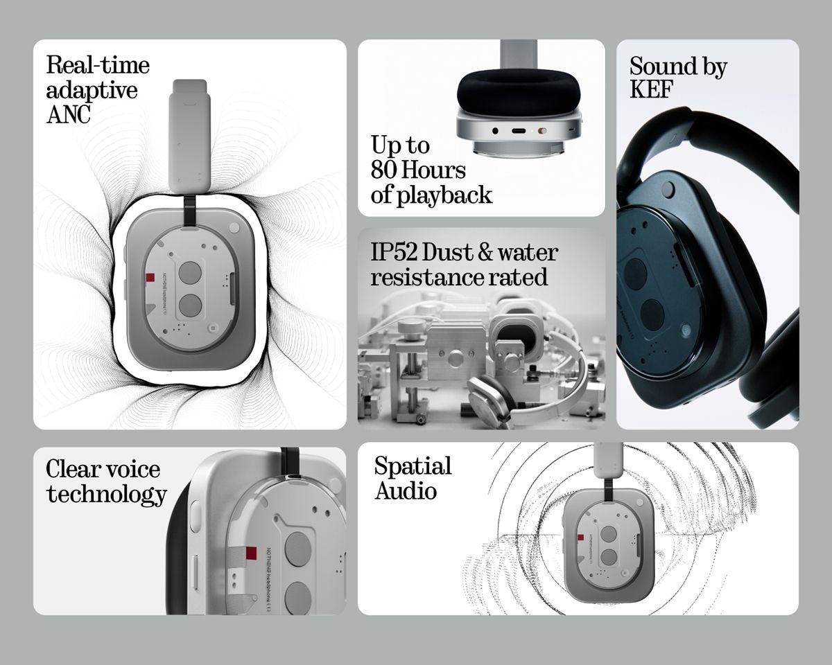 Headphone (1) delivers an immersive audio experience thanks to its custom 40mm dynamic driver & natural and precise sound engineered in partnership with KEF. It comes with real-time ANC to reduce noise by adapting to environments, boosted by the 4-mic ENC to guarantee crisp, clear calls, even in challenging conditions. Support for Hi-Res Audio, LDAC and USB-C lossless playback means the audio quality is of the highest calibre. Headphone (1) is built with telescopic arms that mould to the head as well as ear pads made from PU memory foam.