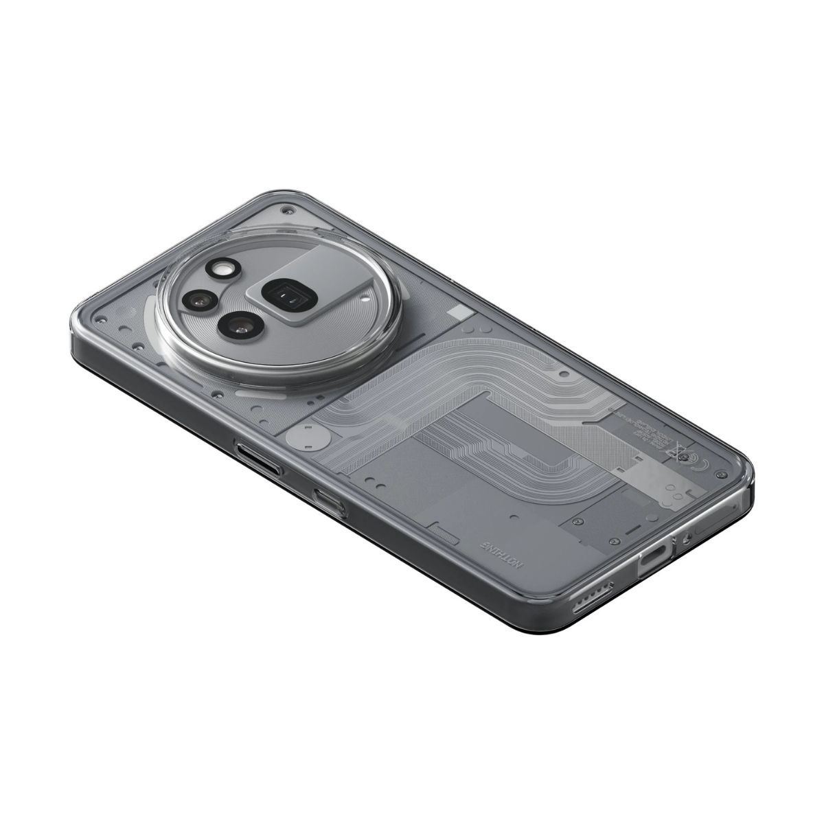 Display & Design: 6.77″ FHD+ LTPO AMOLED screen, 120 Hz refresh rate, peak brightness ~3000 nits, Gorilla/Panda Glass; symmetrical transparent rear with Glyph LED light strips