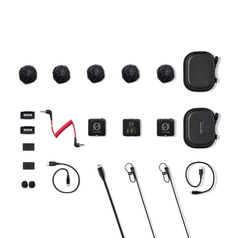 This kit contains everything you need to get started right out of the box. This includes a pair of Lavalier microphones, a charging case, furry windshields, magnetic mounting clips, and cables for connecting to all your devices.