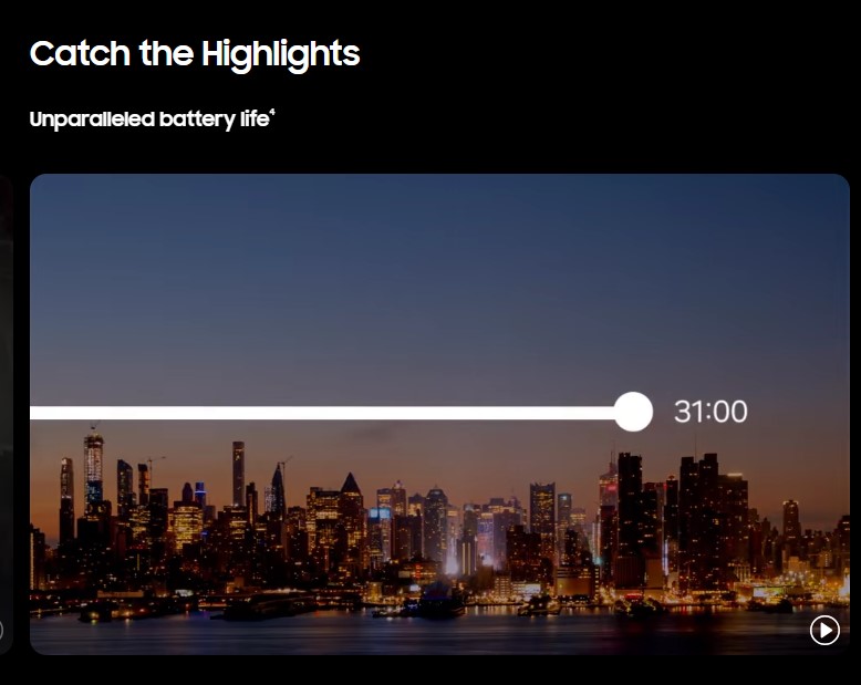 Camera features: Virtual aperture, LOG video, Hyperlapse, Night, Panorama, Photo, Portrait