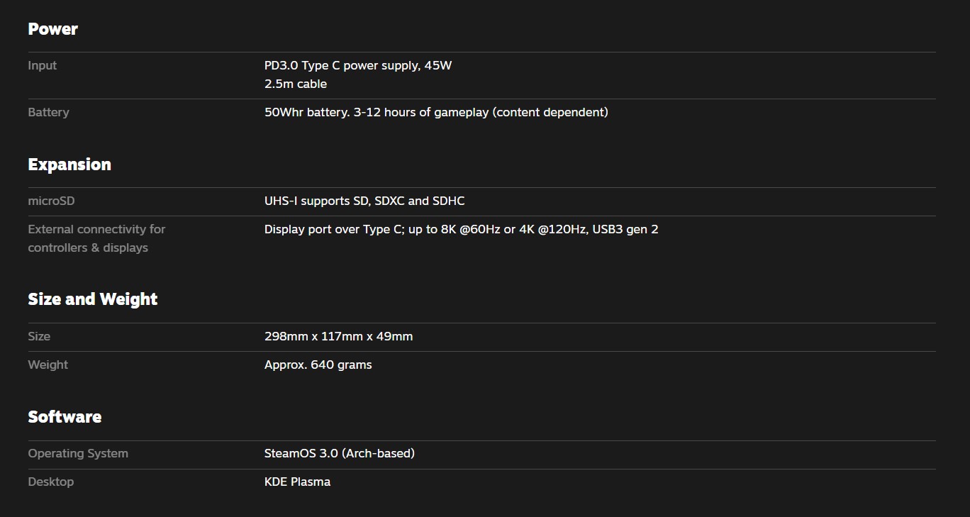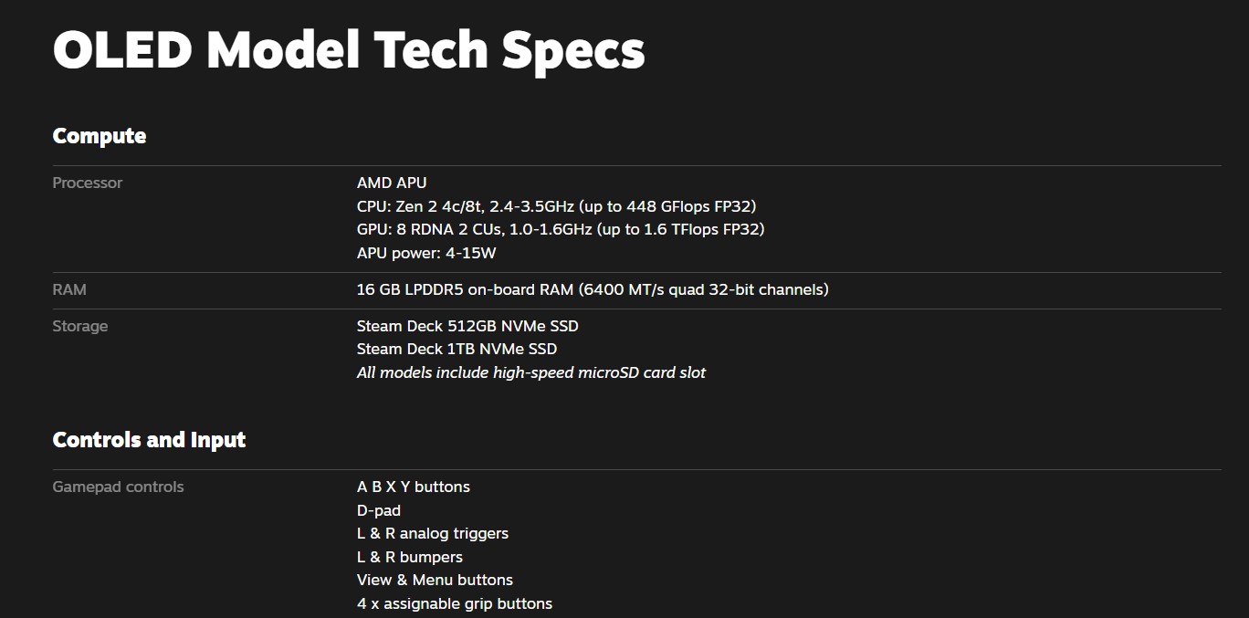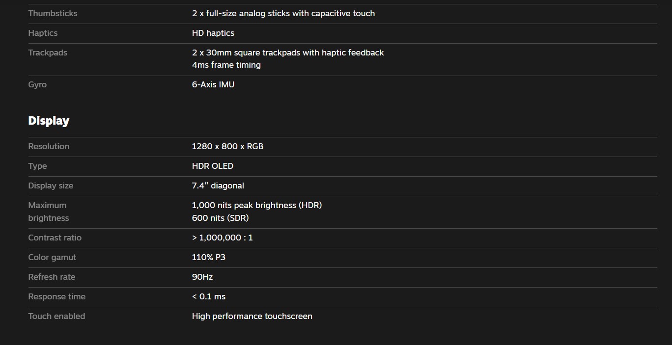 1TB NVMe SSD / 512GB 1280 x 800 HDR OLED display 7.4" diagonal display size Up to 90Hz refresh rate 6 nm APU