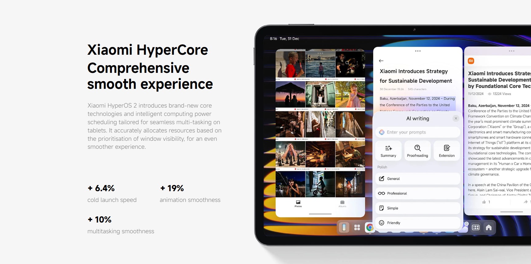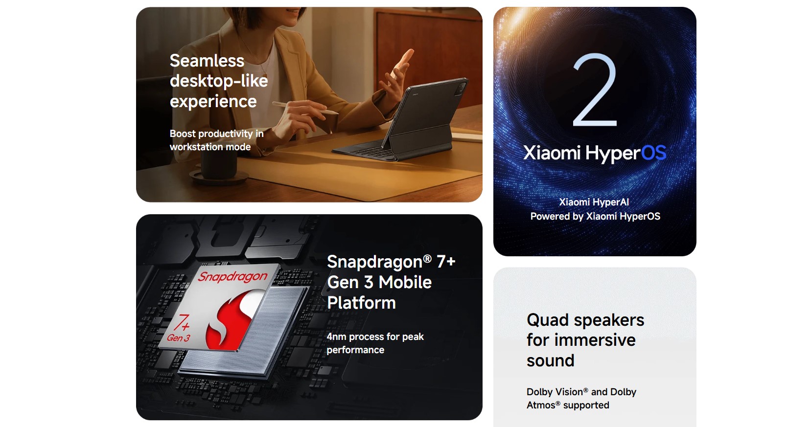 With Xiaomi’s powerful Surge OS 2, the tablet gains advanced AI capabilities, effortlessly handling text, images, and video conferencing across various work scenarios.